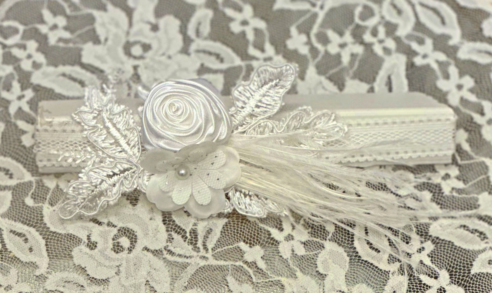 Infant Lace Headband with Flowers, Feathers