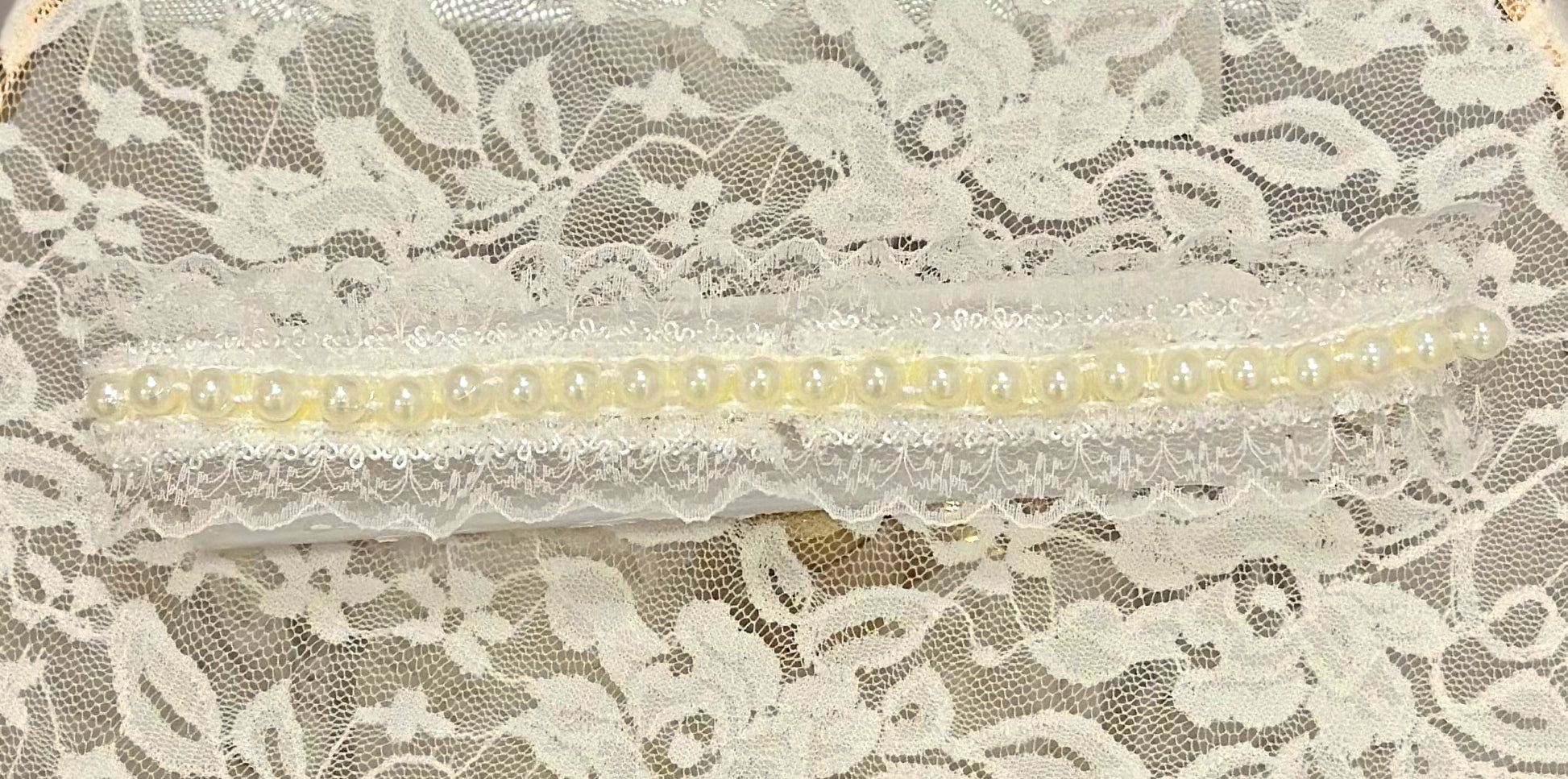 Infant Lace Headband with Lace, Pearl Trim 011253