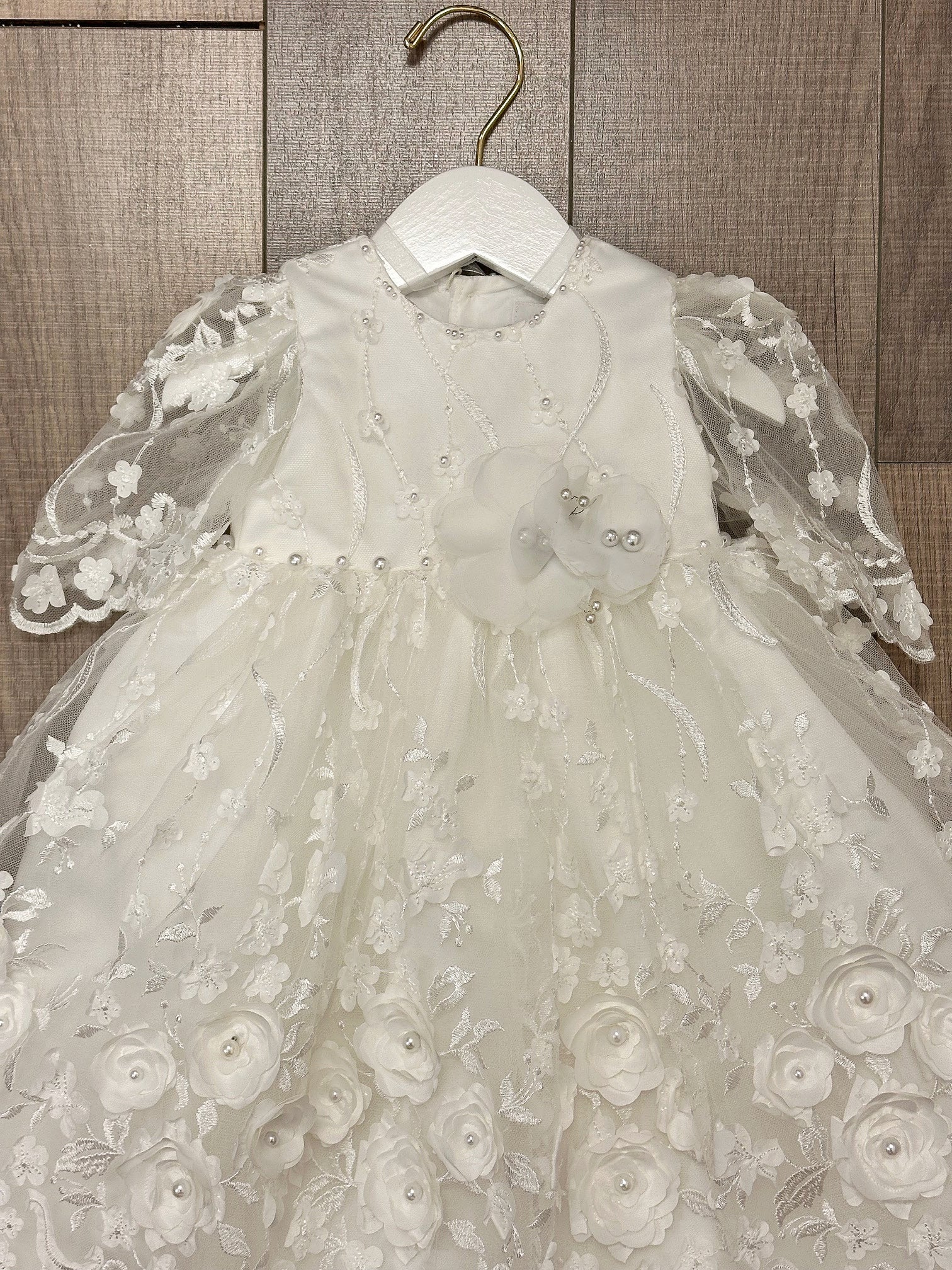 P.Daliana Embroidered Dress w/Floral Applique/Bonnet 008Y90306-1